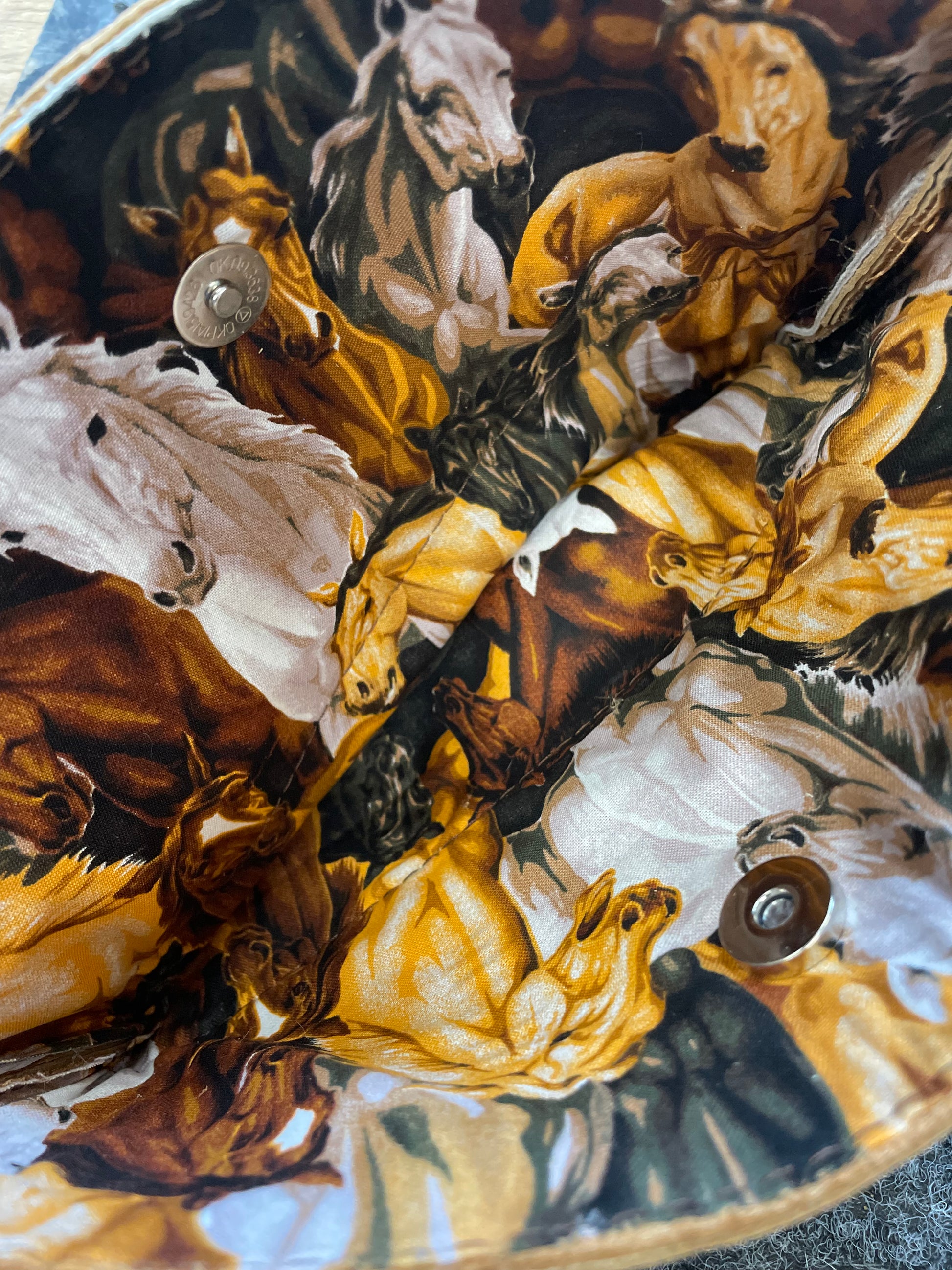 Cowhide & Italian Saddle tan color leather with complimentary aztec embossed leather trim.