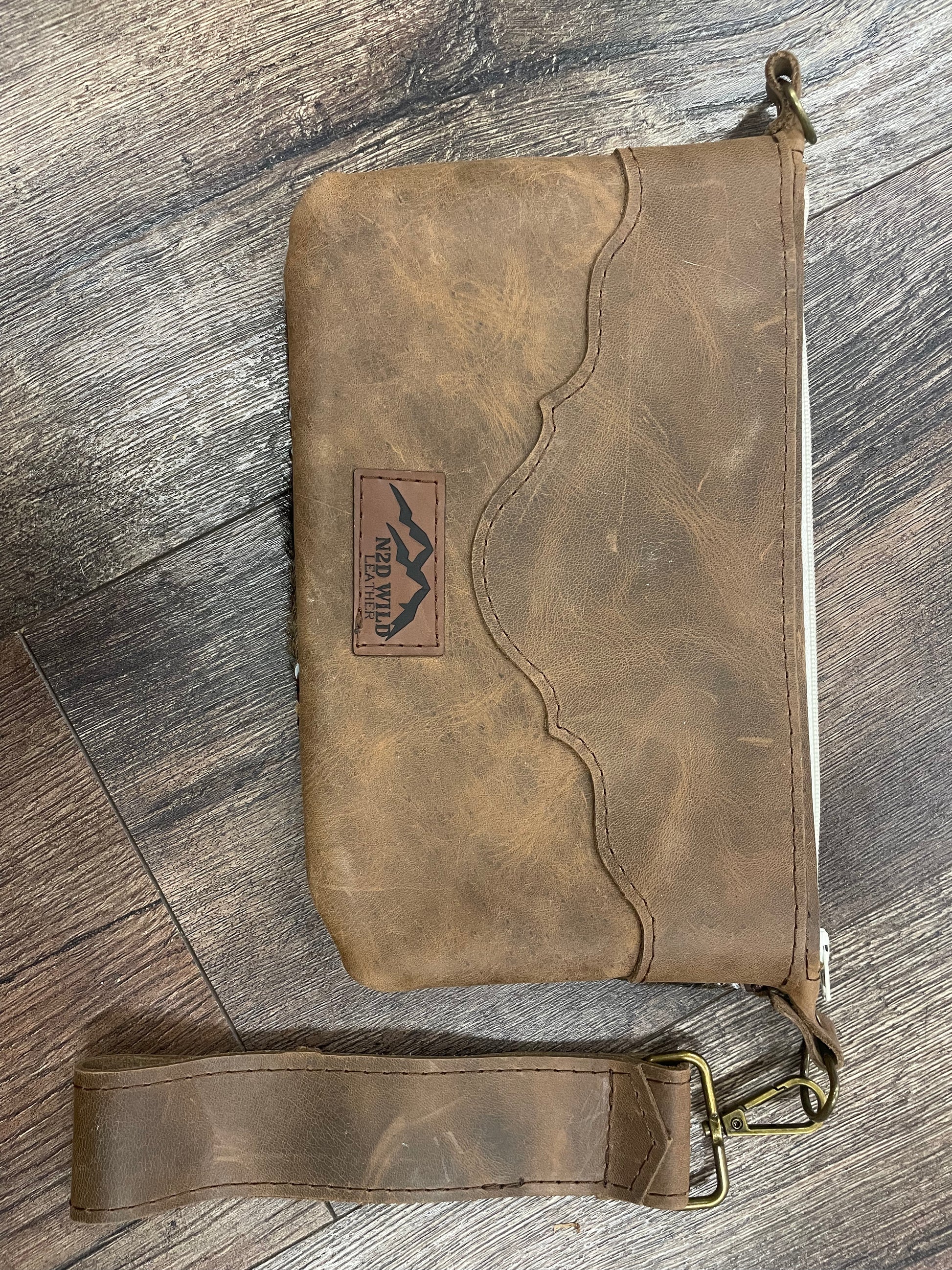 Cowhide & Embossed Leather Patchwork front, zippered.